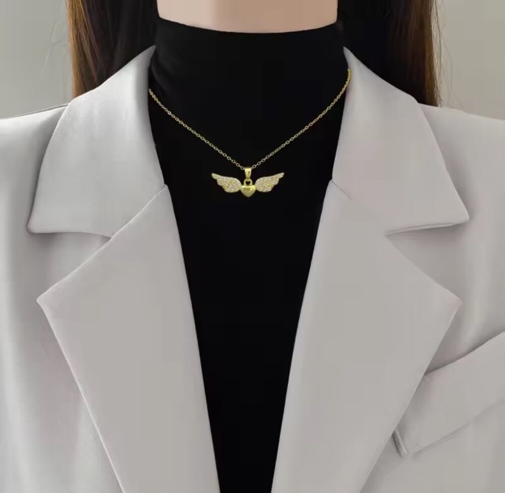 このサージカルステンレスのネックレスは、シルバーカラーが輝く洗練されたデザインで、毎日のコーディネートを華やかに彩ります!天使の羽をモチーフにしたそのフォルムは、可愛さと上品さを兼ね備えており、特別な日でも普段使いでも大活躍間違いなしです^^