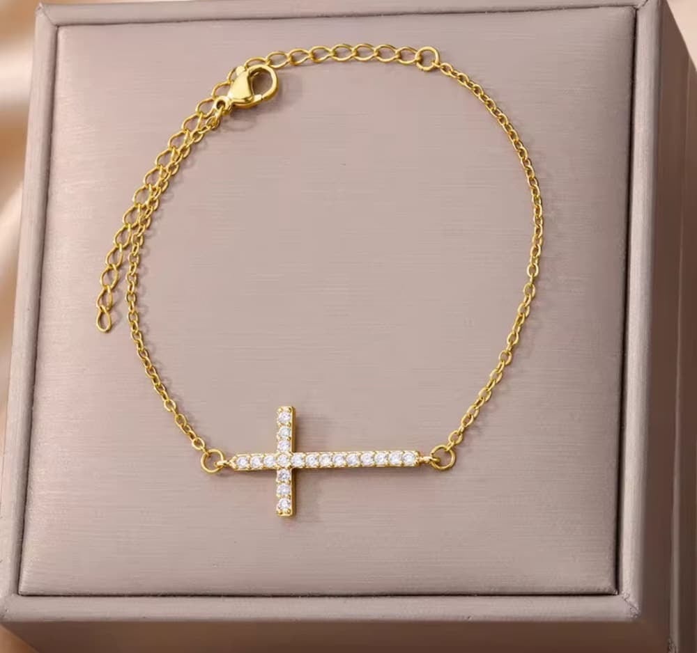 超人気✨czダイヤクロス サージカルステンレス ゴールドチェーン ブレスレット