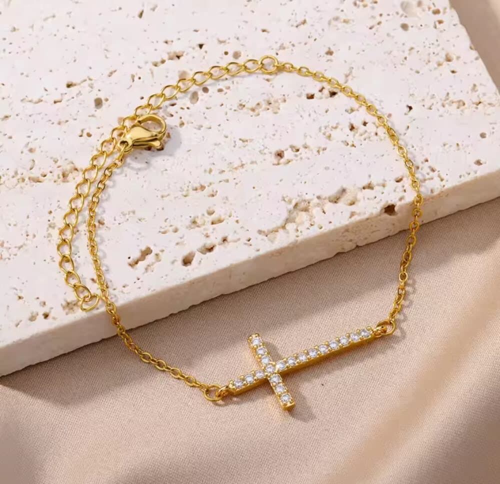 【ラスト1 】クロス ゴールドチェーンブレスレットゴールド ジルコニアダイヤ