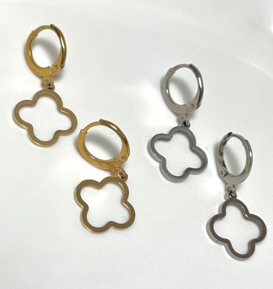 【金属アレルギー対応】サージカルステンレス スイング・クローバーピアス / シルバーゴールド